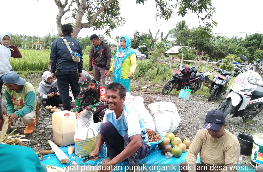 Bertempat di Desa Wosu Kec Bungku barat,kelompok tani padi yang tergabung dalam kelompok tani Padi Organik bersama Petugas Penyuluh Lapangan (PPL) dan Babinsa Serma Rahman melaksanakan kegiatan pendampingan serta sosialisasi pengolahan dan pembuatan pupuk organik guna meningkatkan produksi pertanian khususnya komoditi Padi sawah dengan memanfaatkan bahan-bahan yang ada di sekitar perkampungan warga.