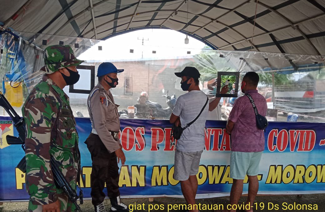 Mengantisipasi penyebaran terhadap Virus Corona yang belakangan ini terjadi penambahan kasus terkonfirmasi Covid 19 di wilayah Sulawesi Tengah,Pos pemantauan dan pengawasan Covid 19 di Perbatasan antara Kabupaten Morowali dan Morowali Utara tepatnya di Desa Salonsa Kecamatan Wita Ponda memperketat pemeriksaan terhadap orang yang akan masuk ke wilayah kabupaten Morowali atau Warga Morowali yang selesai melaksanakan perjalanan ke luar Morowali.