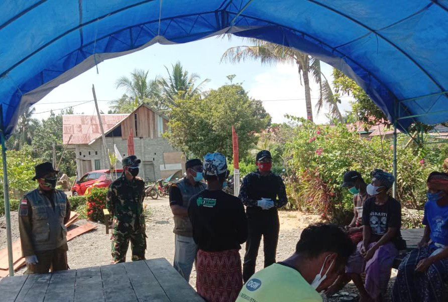 Babinsa Serma Yonny Wungow bersama Tim Tracer Puskesmas Laantula jaya dan pemerintah Desa Emea mendatangi warga masyarakat yang sementara melaksanakn prosesi adat Hindu di rumah salah satu warga masyarakat yang sedang mengalami kedukaan.