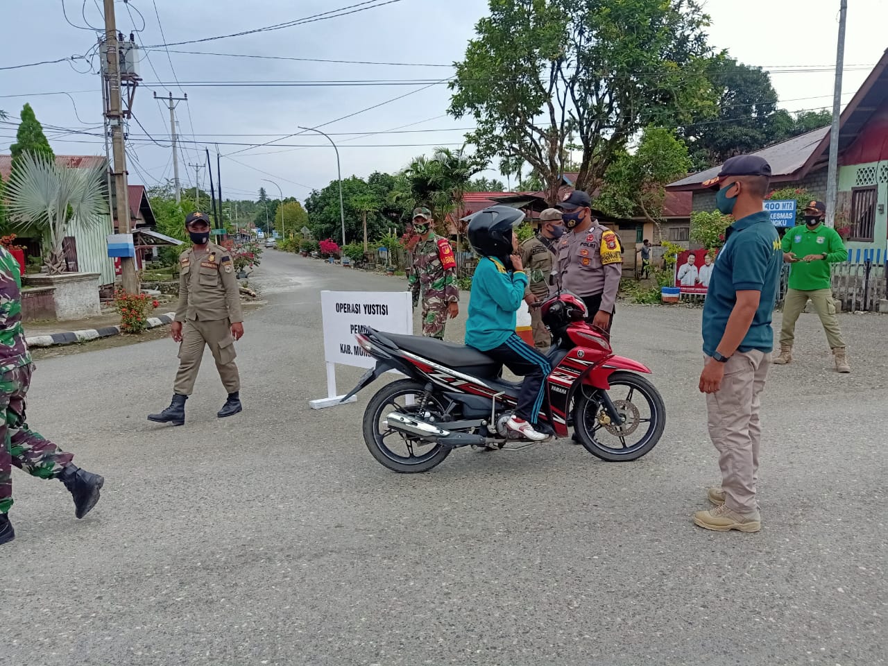 Penegakan disiplin Protokol Kesehatan Covid 19 menjadi hal yang utama dalam pelaksanaan tugas pemantauan dan pengawasan di Pos batas antara Kabupaten Morowali dan Morowali Utara tepatnya di Desa Salonsa Kecamatan Wita Ponda guna mencegah serta memutus rantai penyebaran Covid 19.Petugas gabungan yang terdiri dari TNI, Polri Dinas Perhubungan dan Petugas Kesehatan Puskesmas Laantula jaya tetap melaksanakan tugasnya guna memantau,mencatat/mendata setiap warga baru yang akan masuk ke wilayah kabupaten Morowali serta Warga Masyarakat yang berKTP Morowali namun baru melaksanakan perjalanan keluar daerah Morowali.