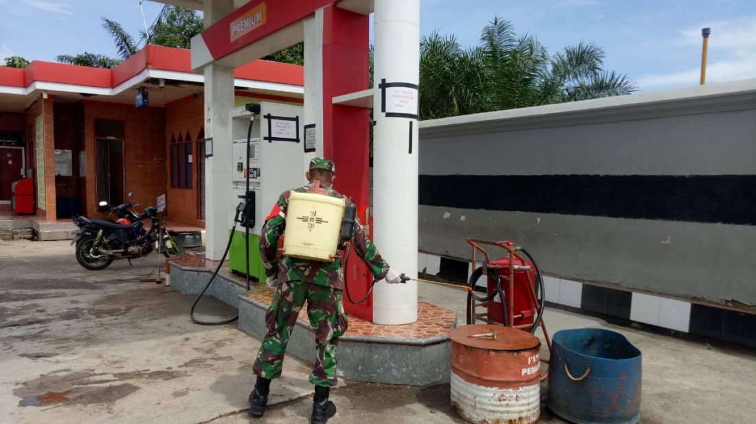 Babinsa kec.Wita Ponda bersama,Pemerintah Desa Emea dan Petugas SPBU Emea laksanakan kegiatan Penyemprotan di Area/Kompleks SPBU Emea.Seperti kita ketahui bersama SPBU Emea menjadi tempat berkumpulnya orang banyak serta tempat antrian kendaraan yang menunggu untuk mendapatkan BBM,sehingga sangat beresiko terjadinya penularan Virus Corona (Covid 19).Sebagai Aparat Teritorial yang perduli dan tanggap dengan situasi yang lagi berkembang saat ini, selain menghimbau masyarakat untuk tidak berkumpul dalam jumlah banyak juga ikut membantu pemerintah dengan mempelopori kegiatan Penyemprotan Desinfektan di Aewa SPBU Emea.